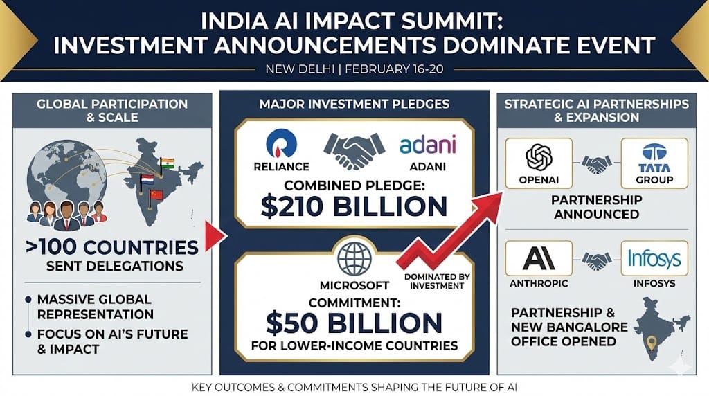 THE BRIEFING: The India AI Impact Summit ran February 16-20 in New Delhi, the first such summit hosted by a Global South nation after previous gatherings in Bletchley Park, Seoul, and Paris. More than 100 countries sent delegations, and investment announcements dominated the event. Reliance and Adani pledged a combined $210 billion for data center and AI infrastructure buildouts, Microsoft committed $50 billion for lower-income countries, OpenAI partnered with Tata Group, and Anthropic partnered with Infosys and opened a Bangalore office. President Trump’s science and technology adviser Michael Kratsios used the platform to reject global AI governance outright, unveiling the American AI Exports Program and declaring that “ideological, risk-focused obsessions, such as climate or equity, become excuses for bureaucratic management and centralization.”