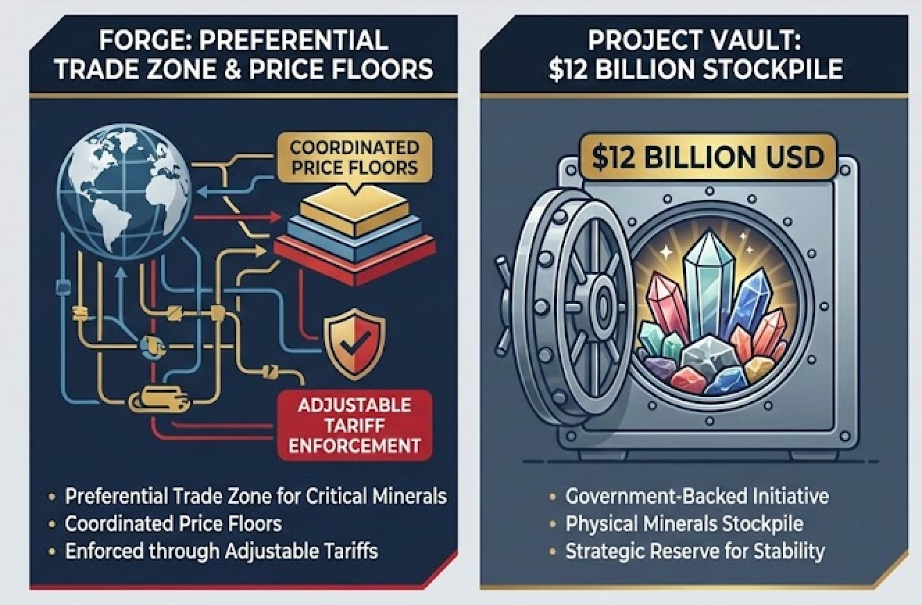 THE BRIEFING: On February 4, the U.S. convened 54 countries at the inaugural Critical Minerals Ministerial in Washington. The centerpiece was the Forum on Resource Geostrategic Engagement (FORGE), replacing the Biden-era Minerals Security Partnership. Vice President J.D. Vance described it as a “preferential trade zone for critical minerals” with “reference prices at each stage of production” maintained through “adjustable tariffs.” Two days earlier, Trump announced Project Vault, a $12 billion strategic minerals reserve backed by a $10 billion EXIM loan, the largest in the bank’s history. GM, Boeing, Google, Stellantis, and Corning have reportedly expressed interest in tapping the stockpile.