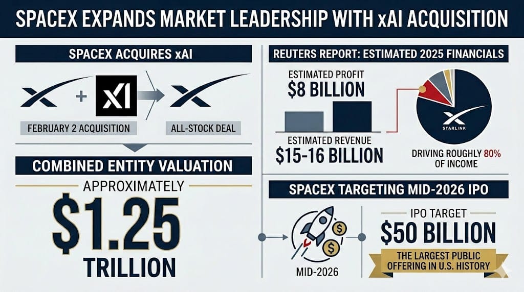 xAI’s Grok has been deployed within the Pentagon’s classified systems since January. With Anthropic’s Claude being phased out on a six-month timeline, Grok is positioned as one of its primary replacements at the precise moment the Defense Department is running AI-assisted operations in Iran. SpaceX generated an estimated $8 billion in profit on $15 billion to $16 billion in revenue in 2025, with Starlink driving roughly 80% of income. xAI was burning approximately $1 billion per month prior to the merger.